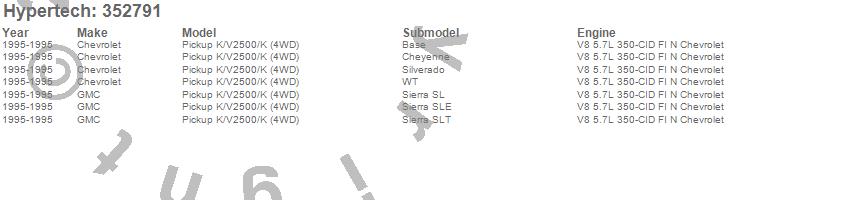 Below is an abreviated list of applications for the Street Runner Power Chip.