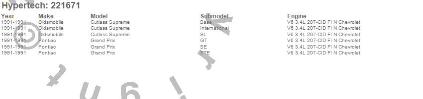 Below is an abreviated list of applications for the Street Runner Power Chip.