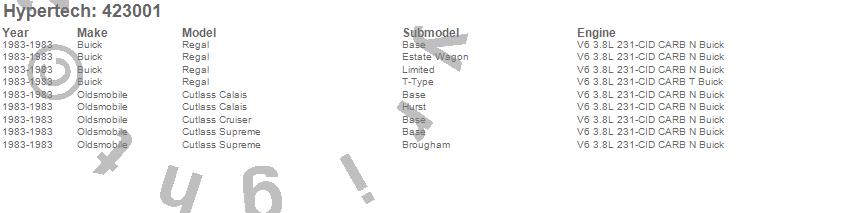 Below is an abreviated list of applications for the Street Runner Power Chip.