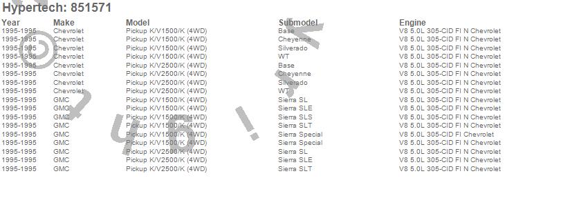 Below is an abreviated list of applications for the Street Runner Power Chip.