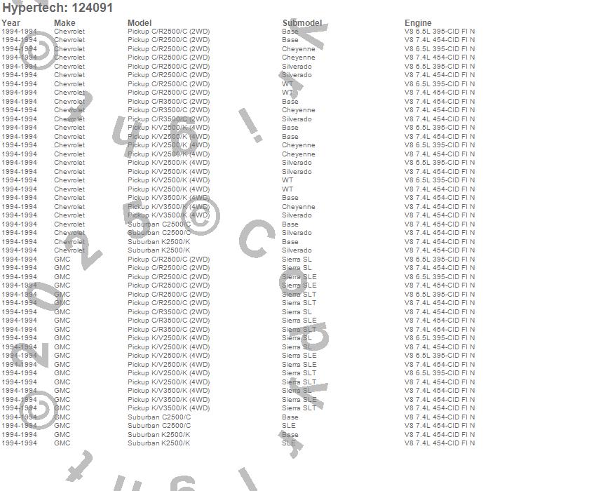Below is an abreviated list of applications for the Street Runner Power Chip.