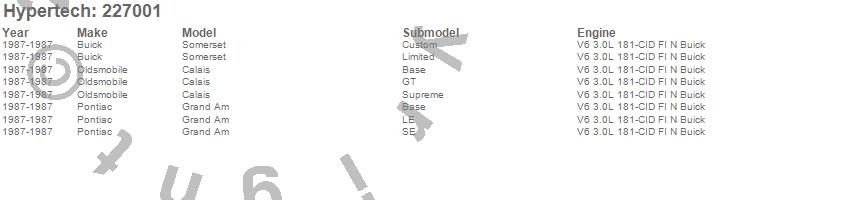 Below is an abreviated list of applications for the Street Runner Power Chip.
