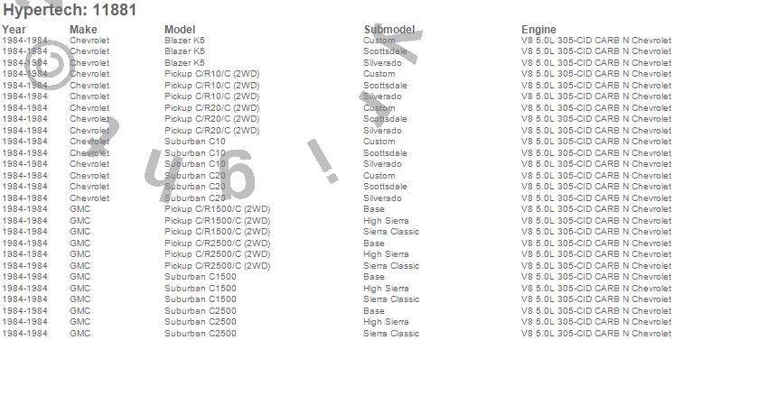 Below is an abreviated list of applications for the Street Runner Power Chip.