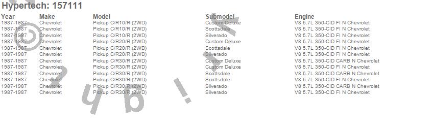 Below is an abreviated list of applications for the Street Runner Power Chip.