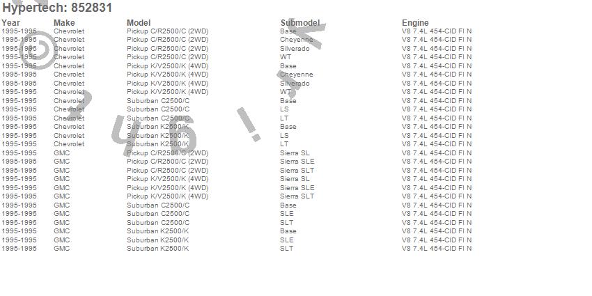 Below is an abreviated list of applications for the Street Runner Power Chip.