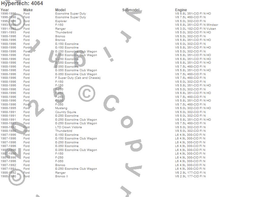 Bronco, Bronco II, Country Squire, E Super Duty, E-150 Econoline, E-150 Econoline Club Wagon, E-250 Econoline, E-250 Econoline Club Wagon, E-350 Econoline, E-350 Econoline Club Wagon, Explorer, F Super Duty, F-150, F-250, F-350, LTD Crown Victoria, Mustang, Ranger, Thunderbird, Ford more…