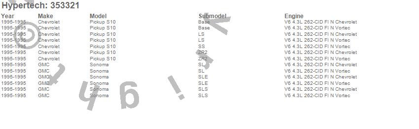 Below is an abreviated list of applications for the Street Runner Power Chip.