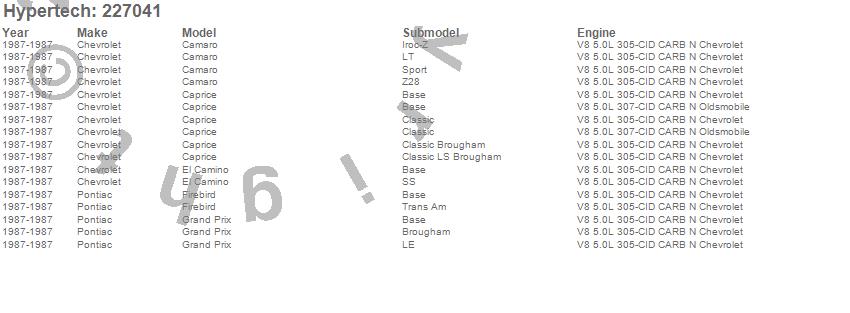 Below is an abreviated list of applications for the Street Runner Power Chip.