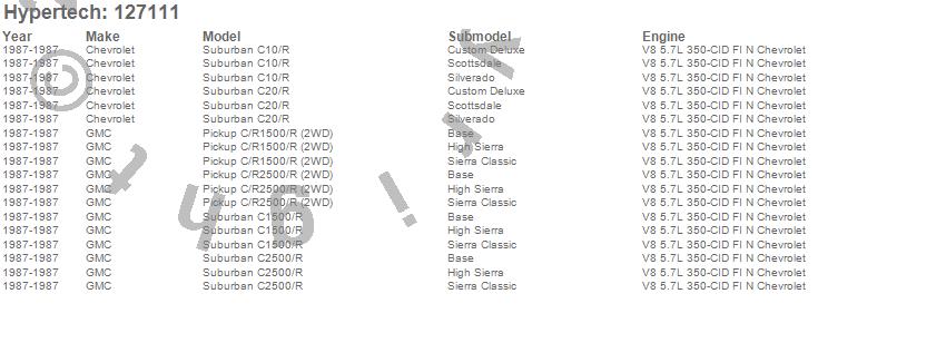 Below is an abreviated list of applications for the Street Runner Power Chip.