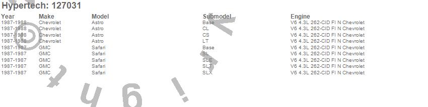 Below is an abreviated list of applications for the Street Runner Power Chip.