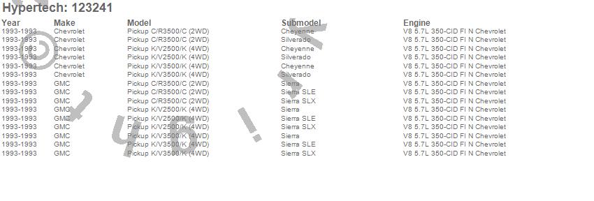 Below is an abreviated list of applications for the Street Runner Power Chip.