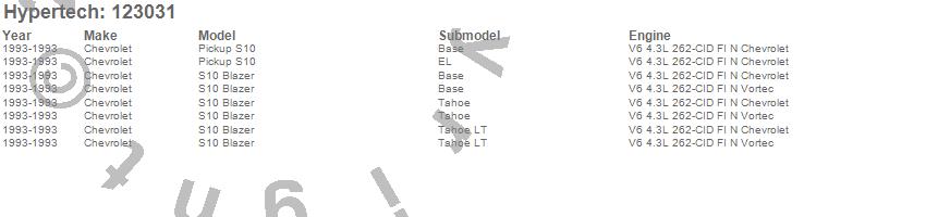 Below is an abreviated list of applications for the Street Runner Power Chip.