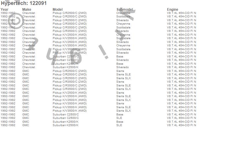Below is an abreviated list of applications for the Street Runner Power Chip.