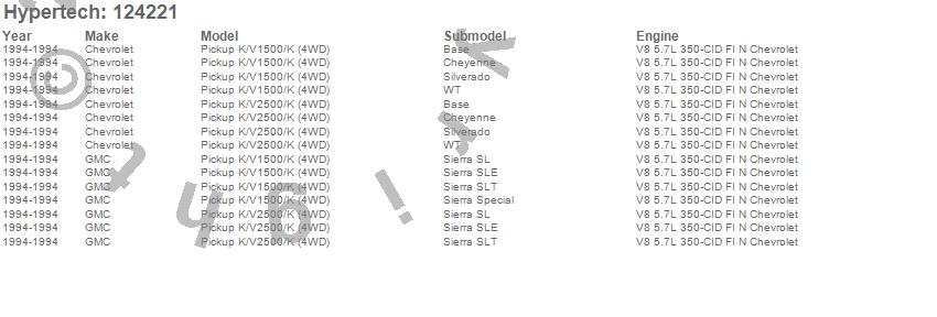 Below is an abreviated list of applications for the Street Runner Power Chip.