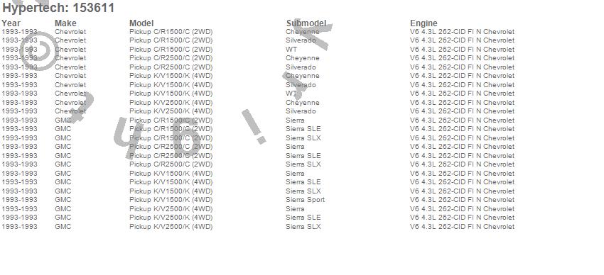 Below is an abreviated list of applications for the Street Runner Power Chip.