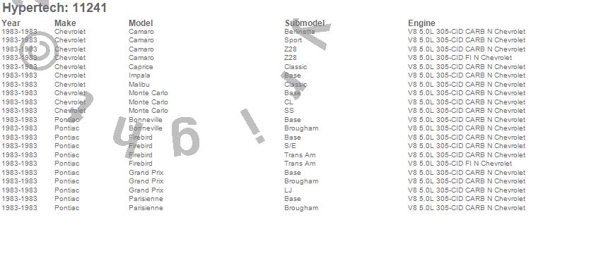 Below is an abreviated list of applications for the Street Runner Power Chip.