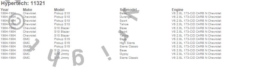 Below is an abreviated list of applications for the Street Runner Power Chip.