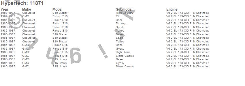 Below is an abreviated list of applications for the Street Runner Power Chip.
