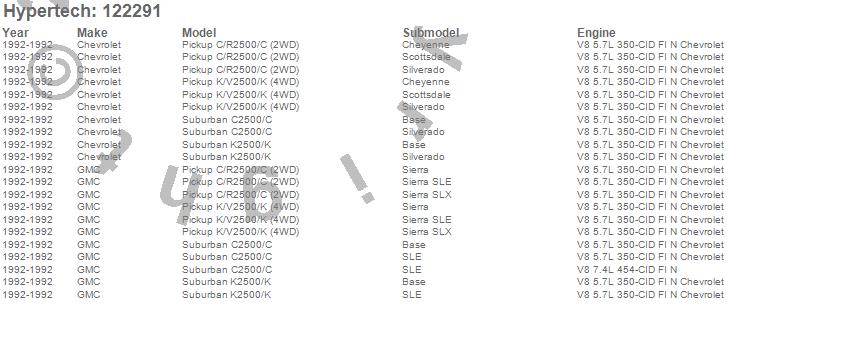Below is an abreviated list of applications for the Street Runner Power Chip.