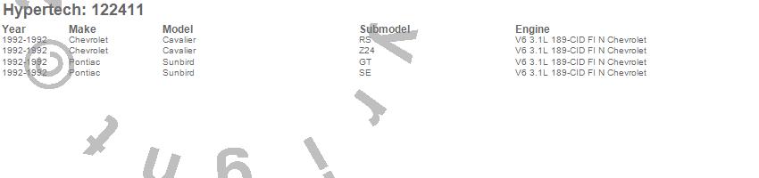 Below is an abreviated list of applications for the Street Runner Power Chip.