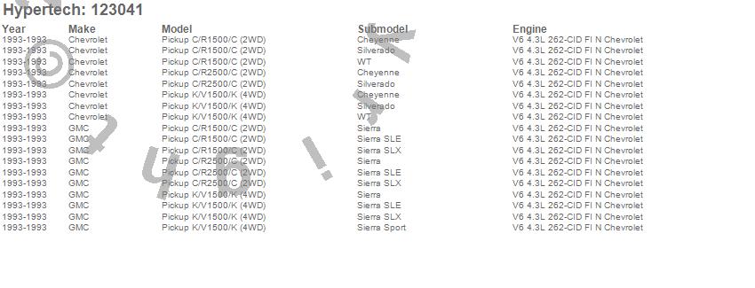 Below is an abreviated list of applications for the Street Runner Power Chip.