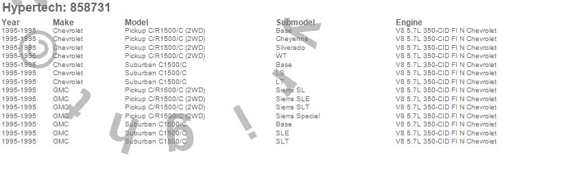 Below is an abreviated list of applications for the Street Runner Power Chip.