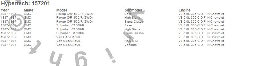Below is an abreviated list of applications for the Street Runner Power Chip.