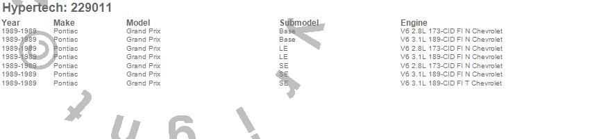 Below is an abreviated list of applications for the Street Runner Power Chip.
