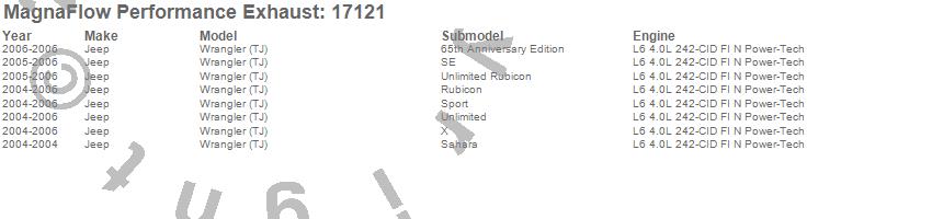 Below is an abreviated list of applications for the Off Road Pro Series Cat-Back Exhaust System.
