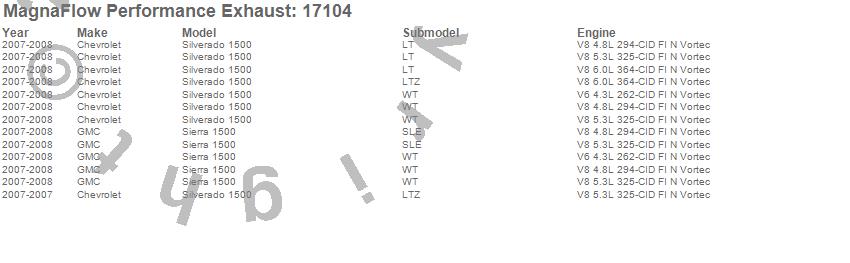 Below is an abreviated list of applications for the Off Road Pro Series Cat-Back Exhaust System.