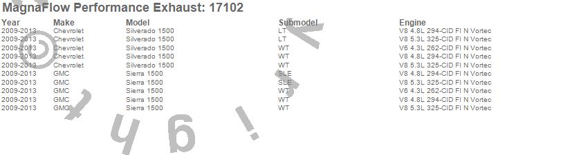 Below is an abreviated list of applications for the Off Road Pro Series Cat-Back Exhaust System.