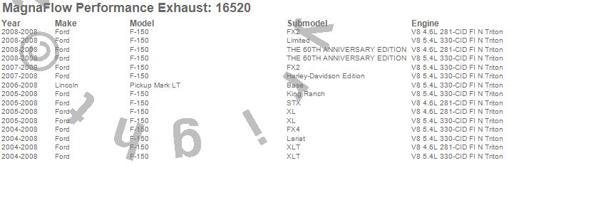Below is an abreviated list of applications for the MF Series Performance Cat-Back Exhaust System.