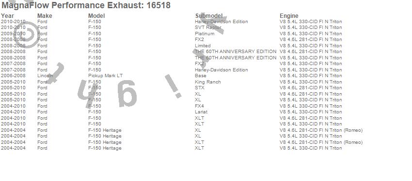 Below is an abreviated list of applications for the MF Series Performance Cat-Back Exhaust System.
