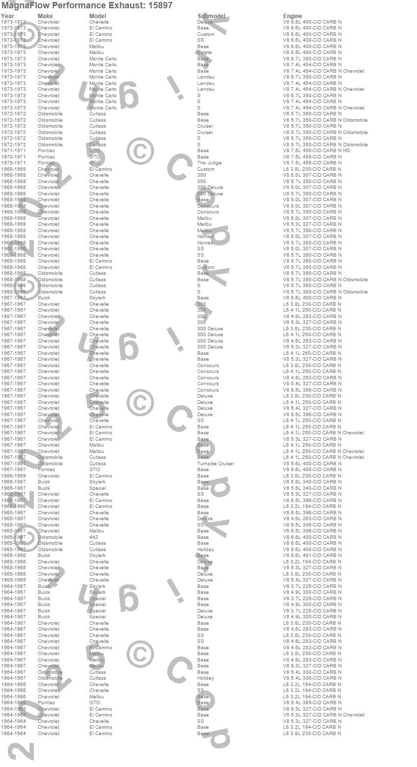 Below is an abreviated list of applications for the Street Series Performance Crossmember-Back Exhaust System.