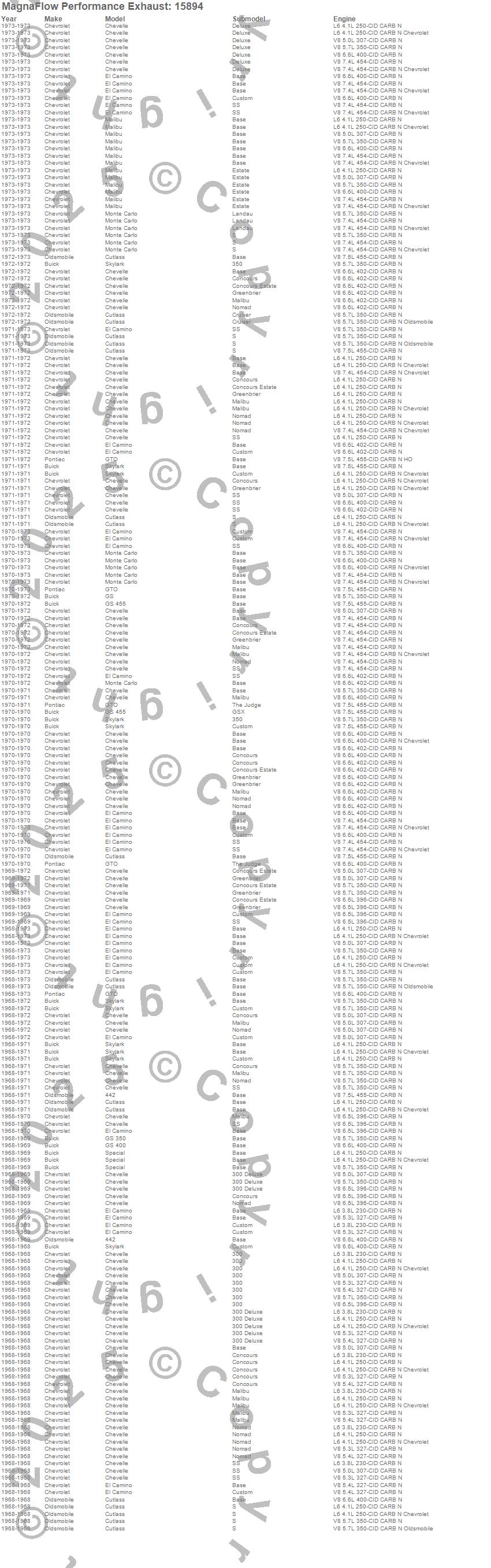 Below is an abreviated list of applications for the Street Series Performance Crossmember-Back Exhaust System.