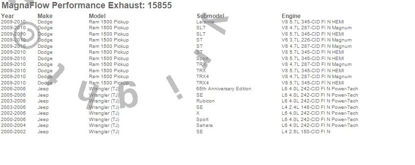 Below is an abreviated list of applications for the MF Series Performance Cat-Back Exhaust System.