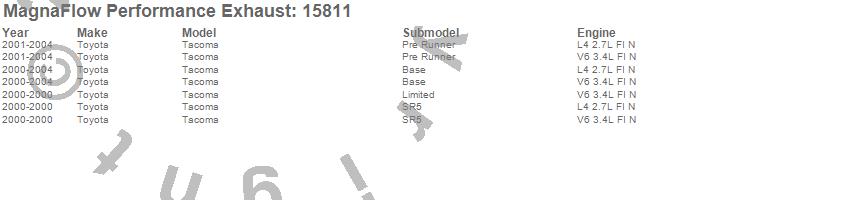 Below is an abreviated list of applications for the MF Series Performance Cat-Back Exhaust System.