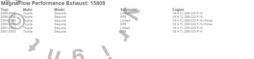 Below is an abreviated list of applications for the MF Series Performance Cat-Back Exhaust System.
