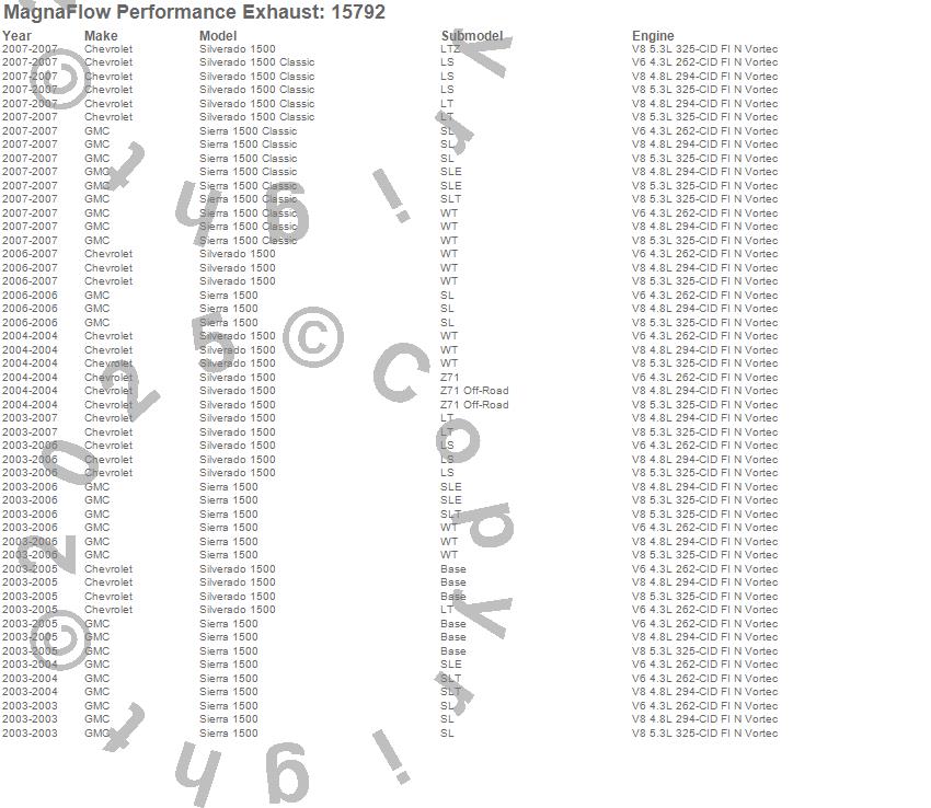 Below is an abreviated list of applications for the MF Series Performance Cat-Back Exhaust System.