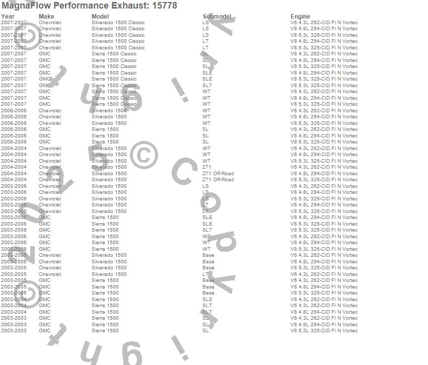 Below is an abreviated list of applications for the MF Series Performance Cat-Back Exhaust System.
