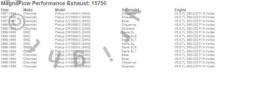 Below is an abreviated list of applications for the MF Series Performance Cat-Back Exhaust System.