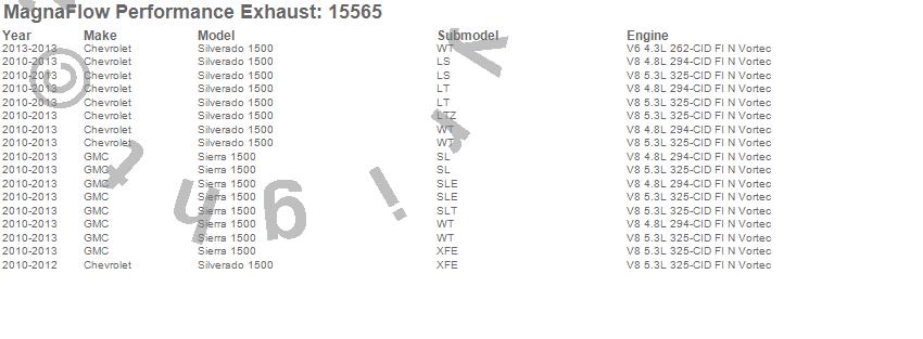 Below is an abreviated list of applications for the MF Series Performance Cat-Back Exhaust System.