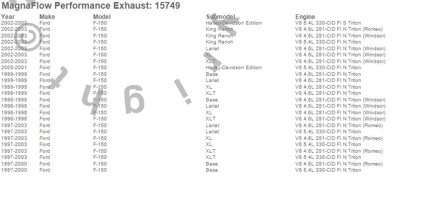 Below is an abreviated list of applications for the MF Series Performance Cat-Back Exhaust System.