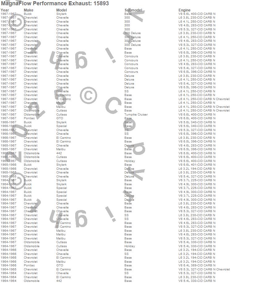 Below is an abreviated list of applications for the Street Series Performance Crossmember-Back Exhaust System.