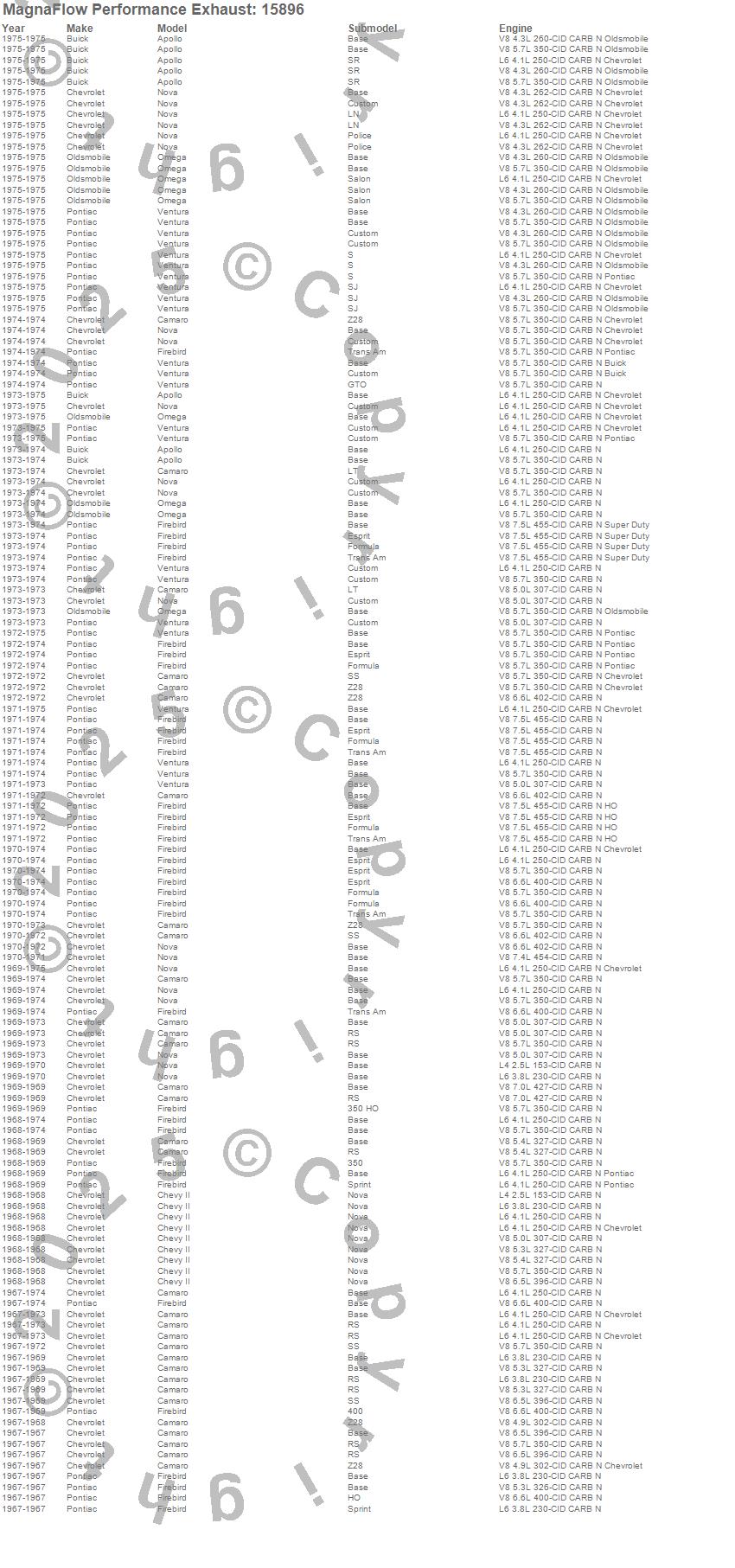 Below is an abreviated list of applications for the Street Series Performance Crossmember-Back Exhaust System.