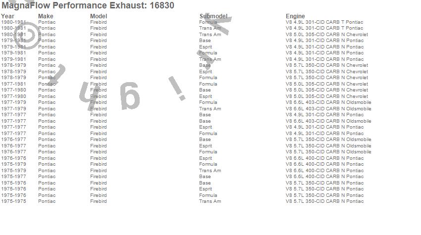 Below is an abreviated list of applications for the Street Series Performance Cat-Back Exhaust System.