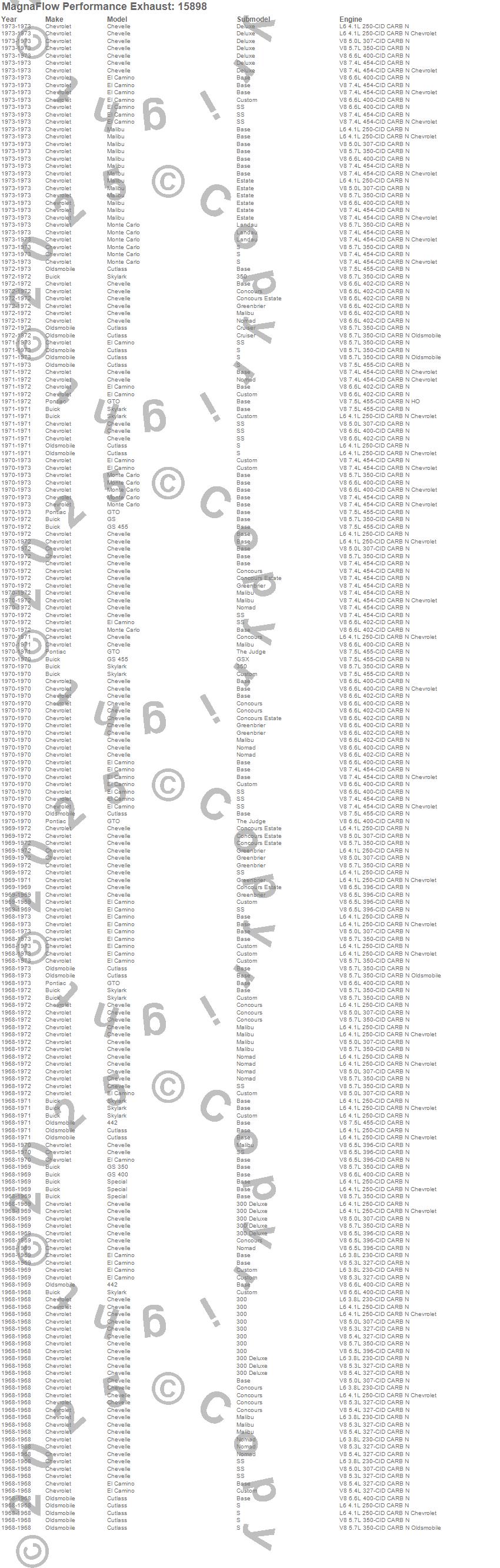 Below is an abreviated list of applications for the Street Series Performance Crossmember-Back Exhaust System.
