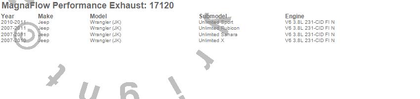 Below is an abreviated list of applications for the Off Road Pro Series Cat-Back Exhaust System.