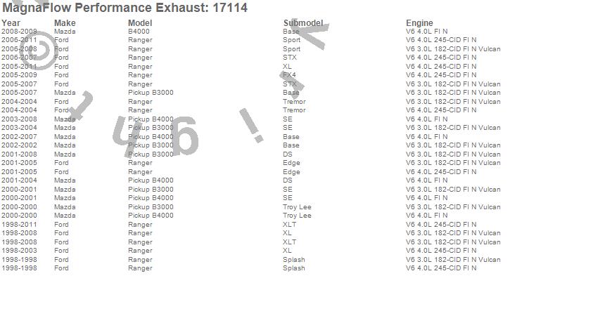 Below is an abreviated list of applications for the Off Road Pro Series Cat-Back Exhaust System.