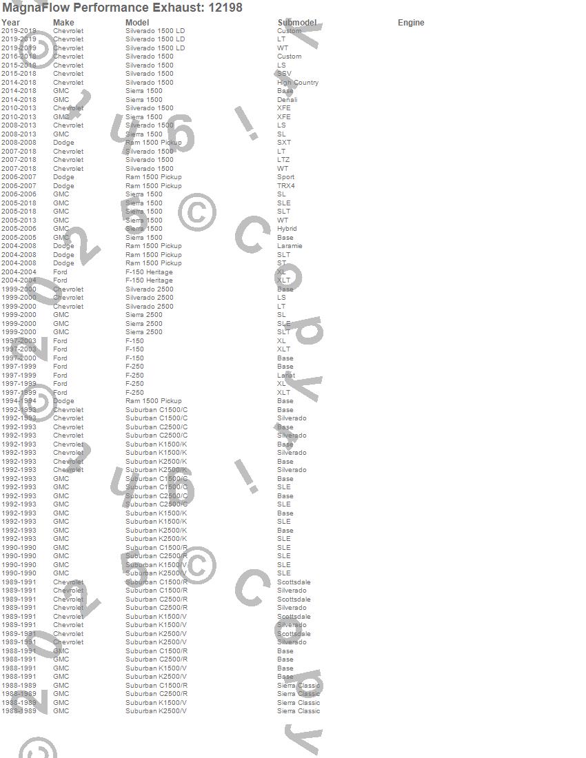 Below is an abreviated list of applications for the Stainless Steel Muffler.